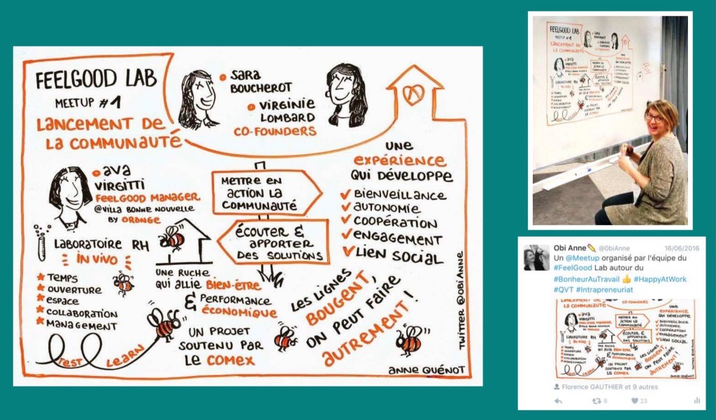 La Facilitation Graphique (aussi appelé Sketchnoting ou Captation Visuelle) est un puissant outil qui a de nombreux bénéfices : capter l’essentiel d’un message d’une conférence ou d’un atelier grâce à des mots et des images et ensuite le partager en résumé « souvenir » de l’essence du message.